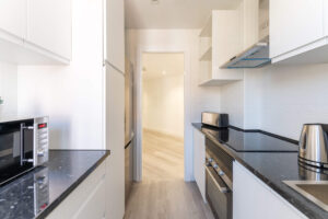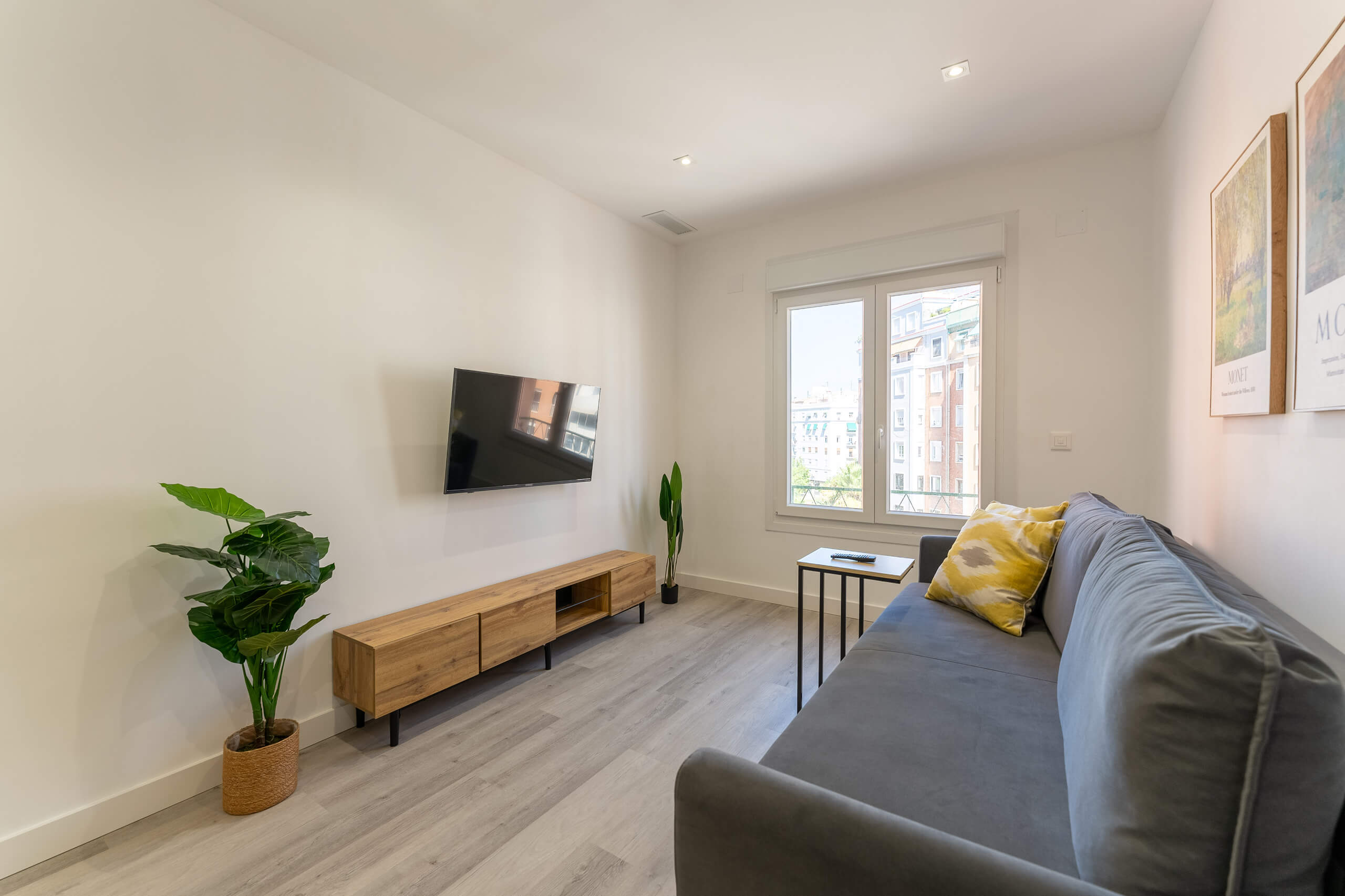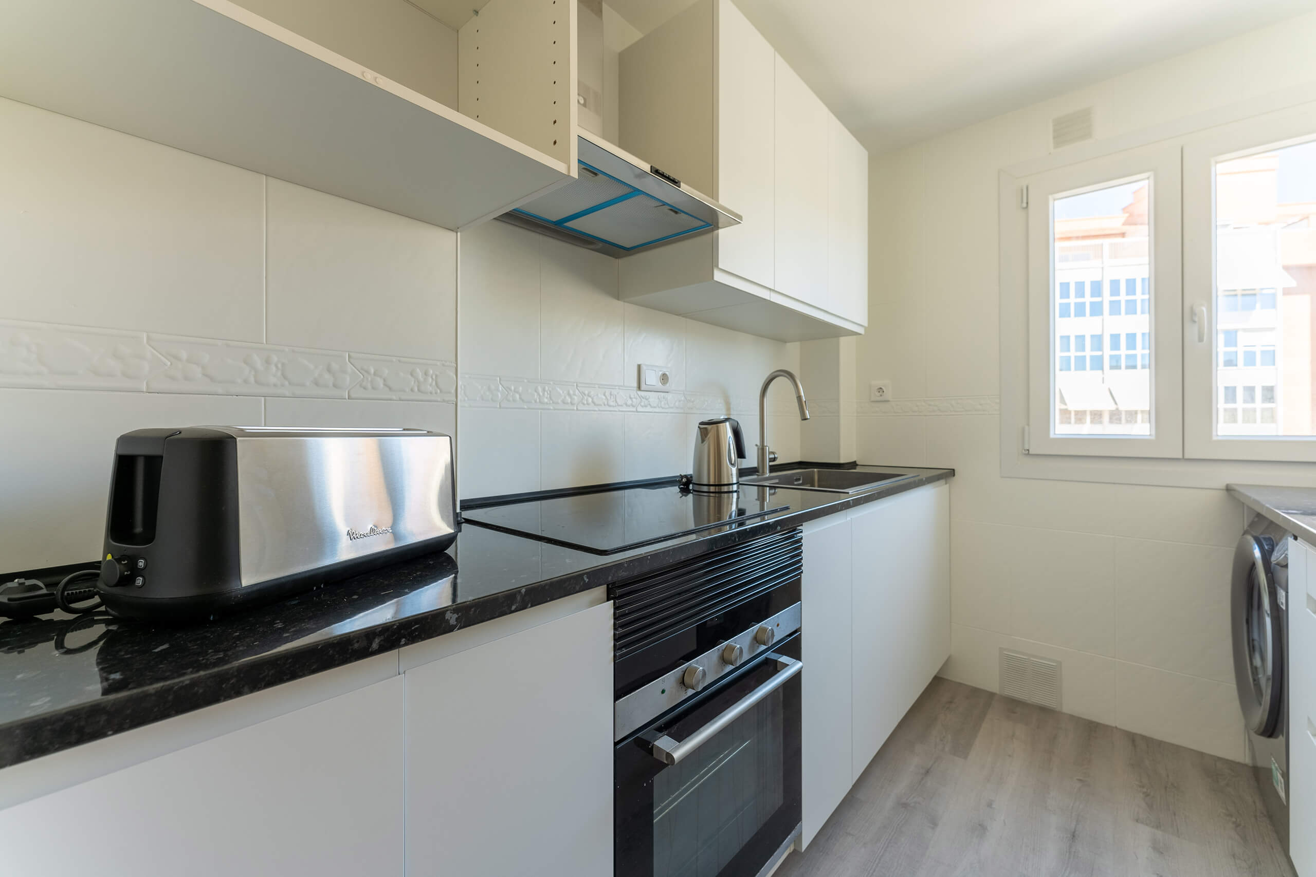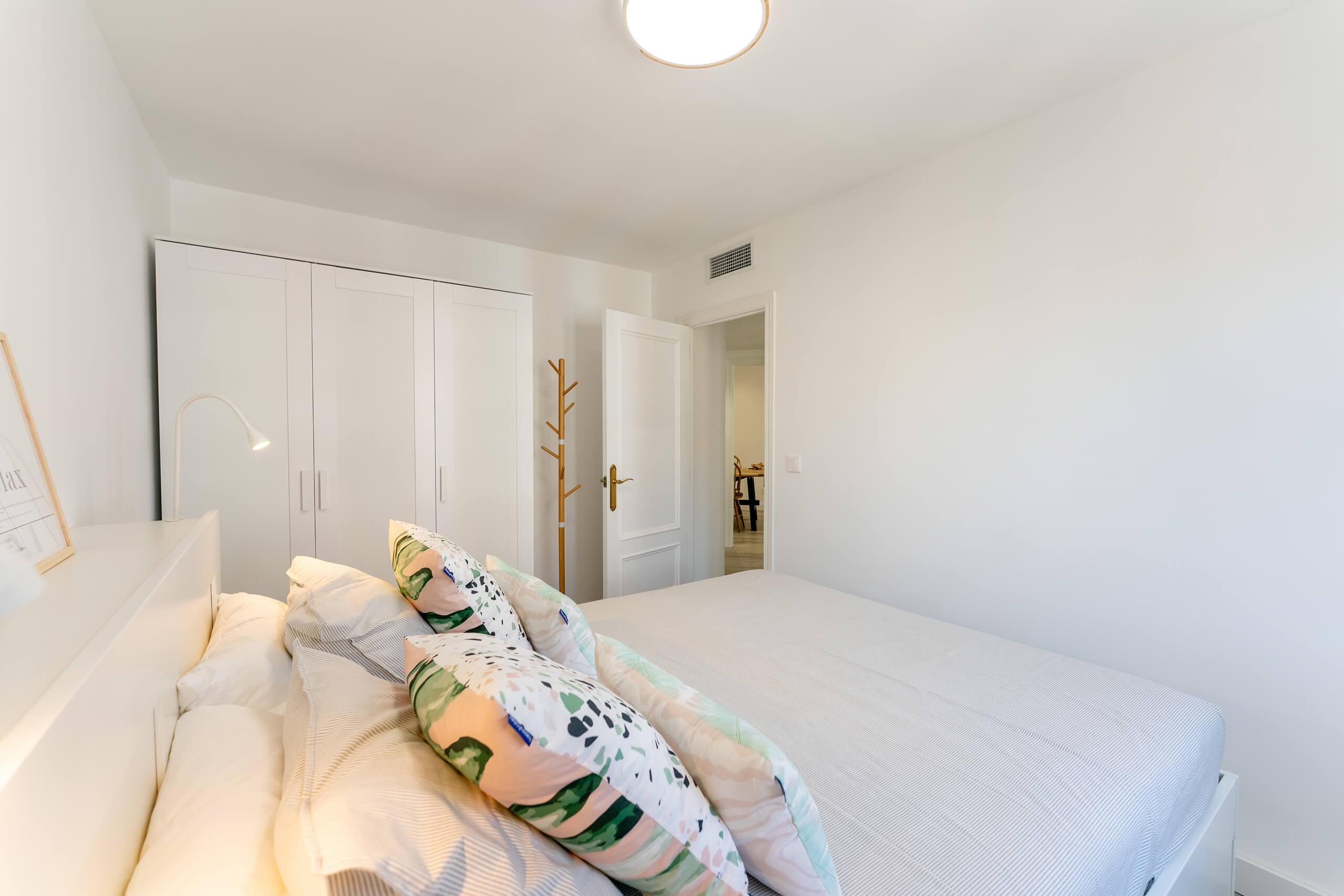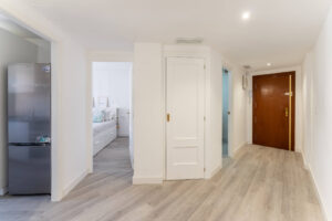 This modern apartment has been completely refurbished, featuring a clean white interior that enhances natural light throughout every room. Its fresh, minimalist style creates a comfortable and inviting atmosphere.